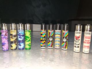 Lotto 12 accendini clipper da Collezione. Li vendo non testati, da revisionare. DESCRIZIONE: 4 accendini Mimetica militare vari colori + 4 accendini foglia Maria + 2 accendini con Frase.