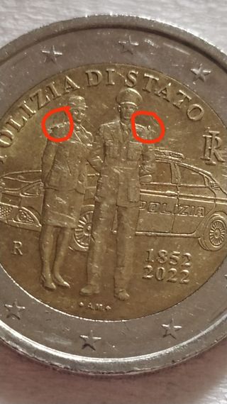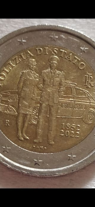 Moneta da collezione 2 euro polizia di stato Italia con errore di conio eccesso di metallo