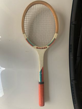 Vendo racchetta da tennis Maxma vintage. È in buone condizioni, con qualche segno di usura. - Marca: Maxma - Materiale: legno - Colore: bianco e rosso