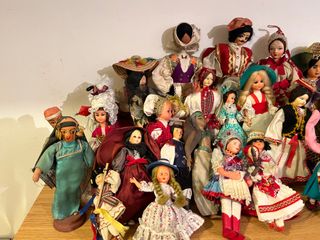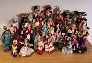 Lotto di 30 bamboline souvenir Varie provenienze Italia e dal mondo Condizioni buone. Essendo state molti anni in soffitta possono presentare polvere e vestiti da rinfrescare.