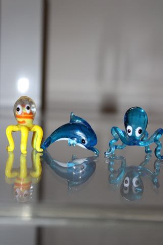 Deliziosi animali marini realizzati da artigiani in vetro di Murano soffiato. Polpo, Delfino, Calamaro - Materiale: Vetro di Murano soffiato. - Imballaggio sicuro con Pluriball antiurto -