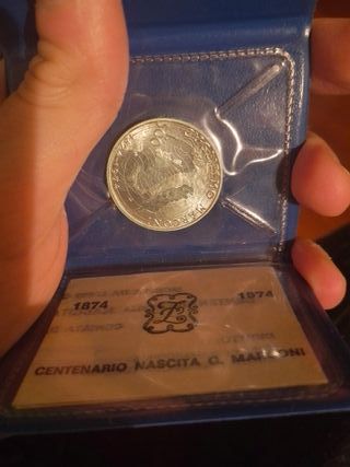 Moneta 500 Lire Argento 1974 Marconi con astuccio