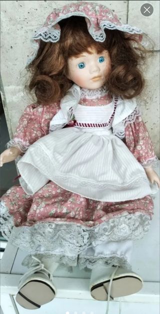 Bellissime bambole in porcellana con abiti dettagliati. Conservano i loro imballaggi. Mai usato. - Bambola 1: Abito bianco con pois rossi e volant. - Doll 2: abito floreale con cappello abbinato. - Entrambi con dettagli in pizzo e fiocchi. 10€ ciascuno. Entrambi 15€