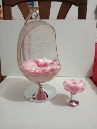 Poltrona e sgabello per bambole Bratz, a forma di uovo, stile retrò, vintage, futuristico. Bambole Bratz, Barbie, Nancy famose.