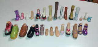 Confezione di 7 paia di scarpe per bambole Bratz. Prezzo per la confezione: 24€ Prezzo per paio di scarpe: 4€ - 1 paio di scarpe sportive - 1 paio di stivaletti - 1 paio di stivali - 1 paio di scarpe da casa - 1 paio di sandali - 1 paio di sandali romani - 1 paio di stivaletti con tacco