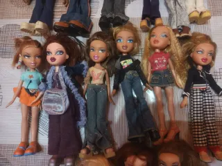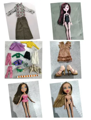 Lotto di 7 bambole Barbie e Bratz + Abbigliamento vario