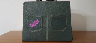 Valigetta originale Bratz dell'anno 2001. Presenta un design ispirato alla moda country con cordoncini decorativi e dettagli brillanti. Include bambole Bratz, vestiti e accessori.