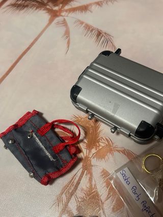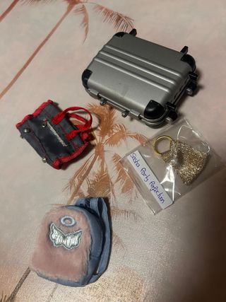 Set di accessori per bambole Bratz. Hanno segni normali del tempo e dell'uso, ma in generale sono in buone condizioni. - Valigia argentata con dettagli neri e zaino grigio e rosso (Cloe Tokyo a Go Go) - Zaino rosa e blu con design ad ali (Cloe Flaunt It) - Borsa dorata (Sasha Party Perfection) Il prezzo del lotto non è negoziabile. Li vendo anche separatamente a un altro prezzo.