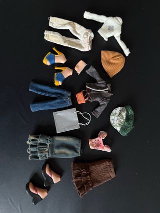 Set di quattro bambole Bratz con accessori. - Bambole Bratz. - Include vestiti e accessori. - Ideale per collezionisti. Solo 10 €