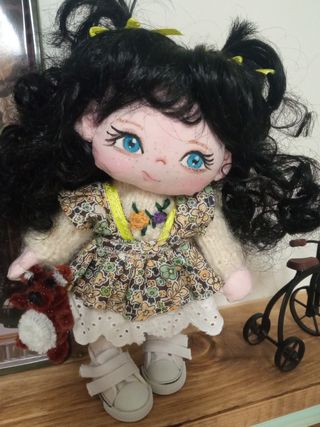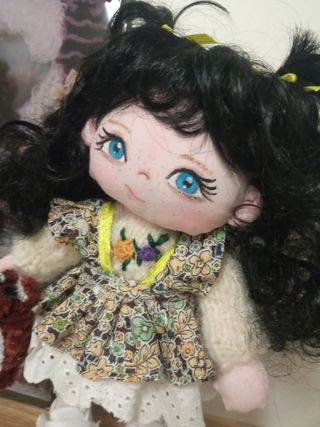 Bellissime bambole di pezza fatte a mano, ideali per decorare o giocare. Sono tre bambole con abiti a fiori e dettagli affascinanti. - Realizzato con tessuti morbidi e delicati. - Capelli di lana nei toni del rosso e del biondo. - Abiti con stampe floreali. - Scarpe in denim. -Il prezzo è ciascuno!