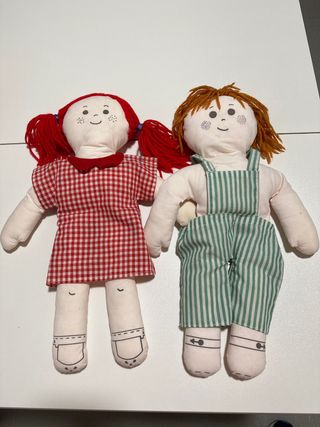 Due bambole di pezza, periodo: fine anni '70 o inizio '80. Buone condizioni Difficile trovare un partner e in queste condizioni. Un unico proprietario. Una bambola: 15€ Due bambole: 25€. Puoi vedere altri giocattoli classici nel mio profilo.