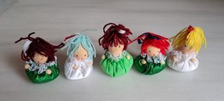 Bambole fatte a mano alte 30 cm con un abito gitano, un vestito da bambina e un abito da angelo natalizio, con braccia articolate. Prezzi per polso.