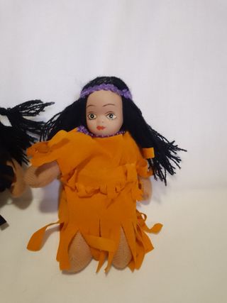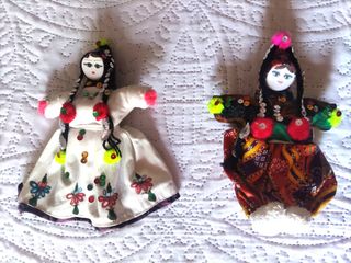 Bambole di pezza ammantate, le prime due piuttosto alte, tipo Nancy, l'ultima è più moderna con costume tipico peruviano, in buone condizioni generali per la mancanza di igiene completa perché sono fatte di stracci, quelle grandi a 15 euro, le altre da 3 a 10 euro ciascuna, chiedi cosa ti interessa