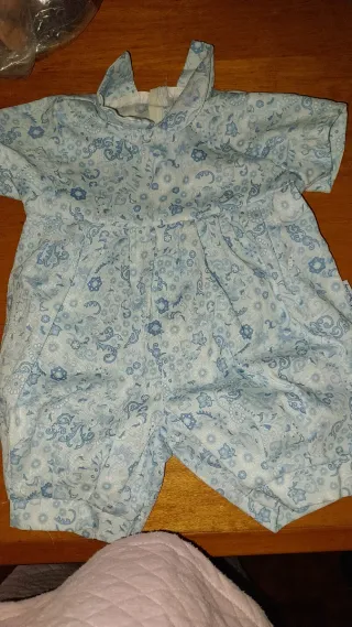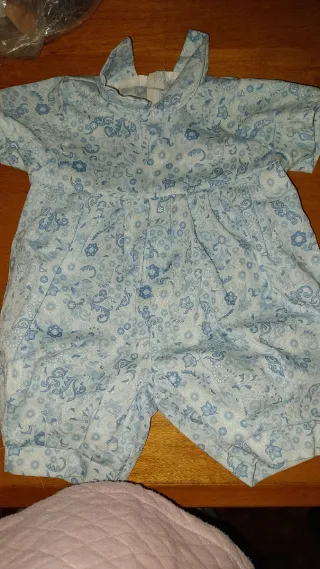 Pezza per neonato con stampa floreale in toni di blu e bianco. Ideale per bambole. - Dimensioni approssimative: 39x25cm. - Design con collo e maniche corte.