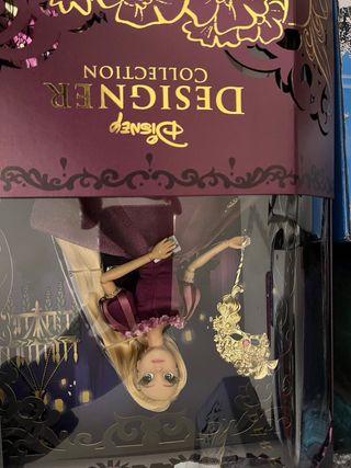 Bambola di Cenerentola dalla Collezione Disney Designer (120€). - Edizione limitata. - Vestito blu e argento dettagliato. - Include maschera. - Accessori di lusso. Bambola Rapunzel dalla collezione Midnight Masquerade di Disney (vendita congiunta di 200€). - Design ispirato a un ballo in maschera. - Scatola con dettagli ornamentali dorati e ritagli di maschere.