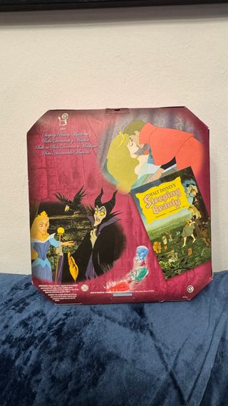 Set regalo di bambole classiche Aurora, La Bella Addormentata, Disney Store. Ispirato a La Bella Addormentata (1959) di Walt Disney. Include bambole di moda: Principessa Aurora, Principe Filippo e Malefica. Figurine in miniatura di Flora, Fauna e Primavera. Elegante toeletta con specchio e sgabello. Ruota e fuso. Presentato in una scatola regalo vetrina con maniglia di trasporto. Prodotto creato per Disney Store. Dimensioni approssimative: Aurora 28 cm, Malefica e Filippo 32 cm, confezione 34 × 65 × 14 cm. N.º di prodotto 416129921544.