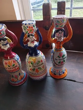 Set di circa venti figure in ceramica artigianale, note come La Toledana. Ogni bambola presenta un design unico e colorato, con una cesta in testa. Realizzate in ceramica. Decorazione dipinta a mano. Ogni bambola ha un design distintivo.