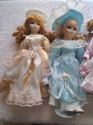 Preziose bambole in ceramica con diversi vestiti. Sono molto curate. Possono stare in piedi o essere posizionate sedute. Possono essere visualizzate separate o tutte insieme. Per il prezzo di tutte insieme, consultare. È possibile richiedere ulteriori foto per vederle meglio.