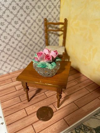 Delicato vaso in vetro trasparente con fiori rosa e foglie verdi, perfetto per la tua casa delle bambole. - Fiori in ceramica rosa. - Dettagli verdi delle foglie. - Base in vetro lavorato. Accessorio per casa delle bambole #dollshousefurniture #casadellebambole #mobiliinminiatura #maisondepoupee #meublespourmaisondepoupee #bambole #meublesenminiature #dollhouse #casademuñecas #dollhouseminiature #puppenhaus #miniatureinlegno #casitademunecas #miniature #poppenhuis #dollshouse #miniatureinlegno #modellismo