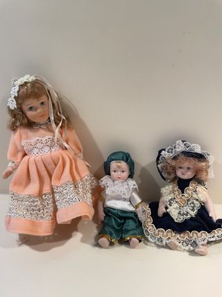 Bellissime bambole di porcellana, perfette per collezionisti o amanti del vintage. - Tre bambole in stile vintage. - Realizzate in porcellana. - Abiti molto curati nei dettagli. - Ottime condizioni.
