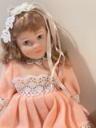 Piccola bambola vintage porcellana dipinta a mano