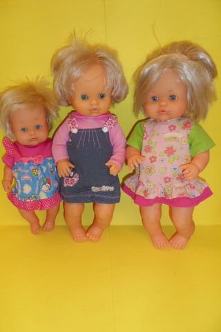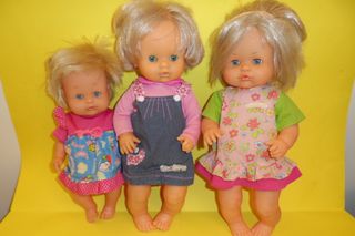 Tre bellissime bambole,circa 30 cm, corpo morbido,lavate e sanificate