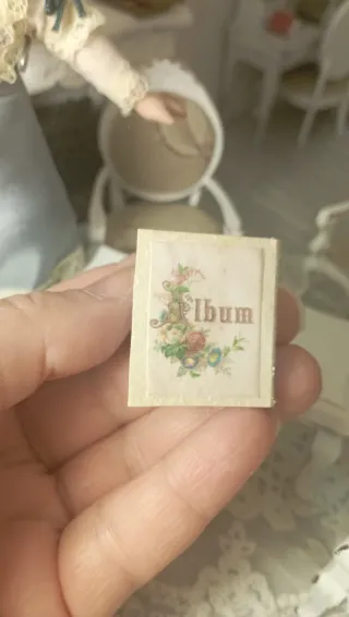 Splendido album fotografico in miniatura scala 1:12, ispirato all'Imperatrice Sissi. Le pagine sono sfogliabili e decorate con eleganti cornici floreali e ritratti d'epoca della famiglia reale austriaca. Copertina rigida con grafica vintage. Perfetto per arredare scrittoi, salottini o camere da letto vittoriane in case di bambole di alta qualità. Un pezzo unico per collezionisti di miniature storiche e amanti dello stile Shabby Chic. Dimensioni realistiche e dettagli nitidi. Handmade 🌷 #miniatura #dollhouse #casademuñecas #sissi #victorian #112scale #miniaturismo #coleccionismo #casadellebambole