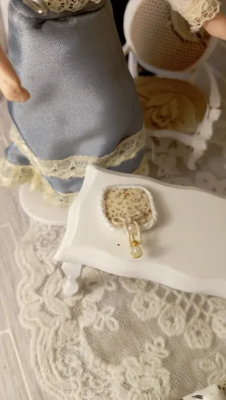 Lasciati rapire dalla magia di un tempo lontano con questo set di miniature "I Mini Desideri". ✨ Un piccolo capolavoro di poesia e dettagli: tazzine in pregiata porcellana dai bordi dorati, piattini decorati, minuscoli cucchiaini d'argento e tovaglioli in pizzo fatti a mano. Ideale per chi ama sognare, per arricchire una casa delle bambole o per un regalo che scalda il cuore. Un angolo di romanticismo Belle Époque pronto a impreziosire la tua collezione🌸 #miniature #shabbychic #vintage #collezionismo #dollhouse #romantic #mini #tè #pizzo