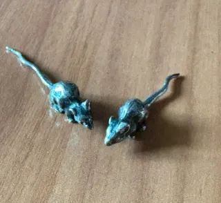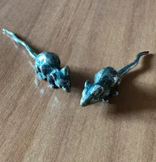 Che piccoli tesori! Questi sono dei topolini in miniatura davvero deliziosi in argento, molto ricercati dai collezionisti di oggettistica "minimal" o da chi ama decorare case delle bambole di lusso e presepi artistici.