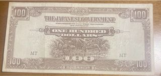 GIAPPONE - BANCONOTA OCCUPAZIONE MALAYA GIAPPONESE 100 DOLLARI ANNO 1944 🇯🇵. Occupazione Malaya-Japanese-100 dollari ND (1944) Il governo giapponese-rilasciato dollar in Malesia e Borneo, parte dell'invasione giapponese in denaro della II Guerra Mondiale, è stato rilasciato tra il 1942 e il 1945 dalle truppe del governo giapponese.