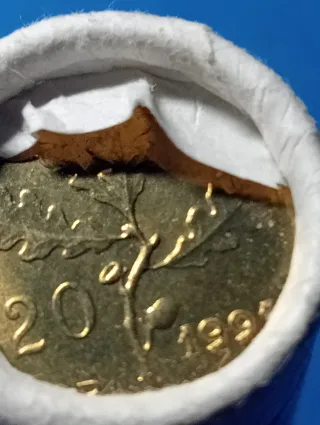 Rotolino di monete da 20 Lire della Repubblica Italiana1991 20 lire ramo di quercia in conservazione FDC fior di conio disponibilità più pezzi al pezzo euro 8