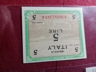 Banconota militare italiana da 5 Lire emessa nel 1943 in conservazione FDS fior di stampa vedi foto e catalogo Gigante. - Valore: 5 Lire - Serie: 1943 - Paese: Italia - Emissione: Allied Military Currency
