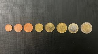 Gruppo di 8 monete di Euro italiane del 2002 (anno dell’entrata in vigore della circolazione fisica) fior di conio, prese in banca e mai fatte circolare. Tutti i tagli; monete da: 1,2,5,10,20,50 centesimi e da 1 e2 euro. Ottimo stato di conservazione