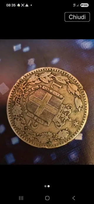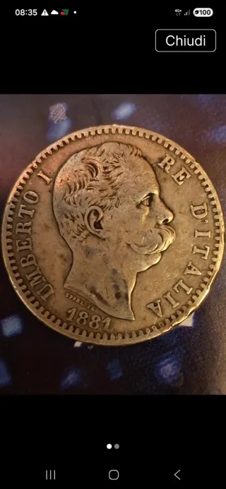 Moneta da 2 Lire del Regno d'Italia, con effigie di Umberto I. - Anno di conio: 1881 - Dritto: Umberto I Re d'Italia - Rovescio: Stemma sabaudo