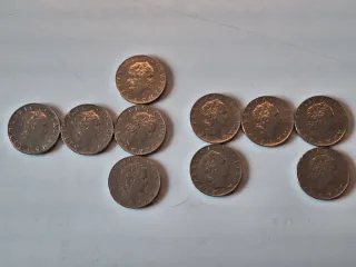 Gruppo di 52 MONETE LIRE ITALIANE L 5= 1951, 1953,1954,1955=totale 4; L 10= dal 1951 al 1956, 1967, dal 1970 al 1983,1985,1987,1989=totale 24; L 20= 1957, 1958, 1969,1970, 1973 (fior di conio in custodia), 1975, dal1978 al 1986= totale 15; L 50= 1971,1979; 1996 (Piccola) =tot. 3; L 100= 1957,1958; 1990,1992 (Piccole)= tot.4; L 200= 1978, Consiglio di stato (anno?)= tot.2.