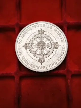 Germania Medaglia ''150 Anni Pour Le Merite'' . La medaglia mostrata commemora i 150 anni dell'Ordine al Merito per le Scienze e le Arti ("150 Jahre Pour Le Mérite für Wissenschaft und Kunst").