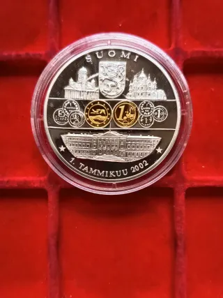 Finlandia Medaglia FDC 2002 commemorativa della Finlandia che celebra l'adozione dell'Euro. La medaglia commemora l'adozione ufficiale dell'Euro in Finlandia avvenuta il 1° gennaio 2011. È un oggetto da collezione, realizzato con placcature in metalli preziosi (Oro e Argento). Medaglia commemorativa finlandese FDC del 2002, con design Euro. - Anno: 2002 - Paese: Finlandia - Tema: Commemorativa Euro