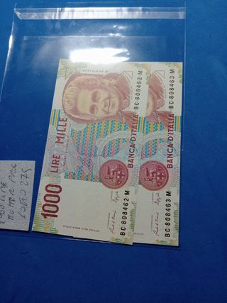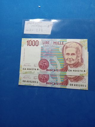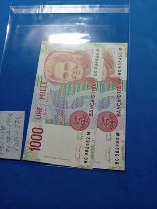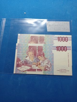 2 banconote da 1000 Lire con numerazione consecutive Fds