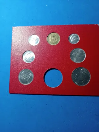 1977 Set di 7 monete divisionale dello Stato della Città del Vaticano Papa Paolo VI - Anno XV (1977). - Include monete in metallo non prezioso. - Presenta lo stemma papale.