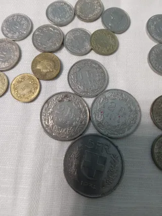 Lotto di diverse monete svizzere. - Monete in metallo. - Diverse denominazioni visibili.