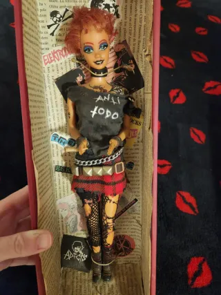Barbie punk Anti Todo. Fatta a mano, unica al mondo! Per collezionisti nostalgici dell'epoca. Include la scatola originale. Design con tema di teschi e ragnatele.
