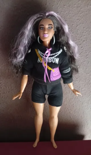 Barbie Extra con uno stile urbano e moderno. - Capelli castani lunghi con ciocche lilla. - Orecchini a cerchio. - Felpa nera con dettagli. - Shorts neri. - Stivali blu. - Spedisco tramite Wallapop corrreos o Inpost. Faccio lot. Nel mio profilo bambole: Barbie Ken Bratz Myscene Monster High Nancy Vintage Rainbow Barriguitas Disney Lol Arias Ponys Nancy New Vestidos moda Nancy 60 70 80 Mimitos Silvanian Chelsea D'anton jos Mariquita Pérez Baúl Muñecas b.b. Muñequitas porcelana Descendientes Hello Kitty Álbum cromos ecc.