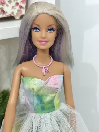 Barbie con un bel vestito rosa. - Abito a spallette con dettagli brillanti. - Include accessori per capelli. - Abito da sera.