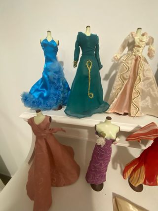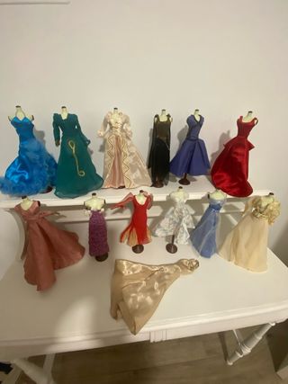 Set di 12 abiti per bambola Barbie, ciascuno presentato sul proprio manichino. Parte di una collezione Salvat di film iconici. Venduti singolarmente a 15, acquistando tutti a 6,25. In regalo un abito senza manichino (foto 5)