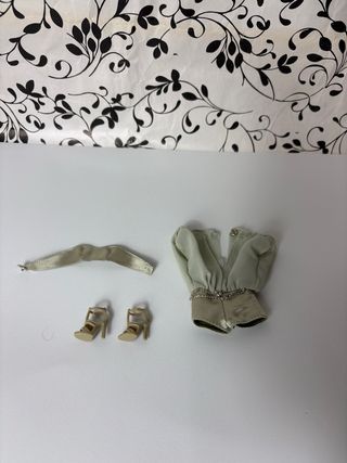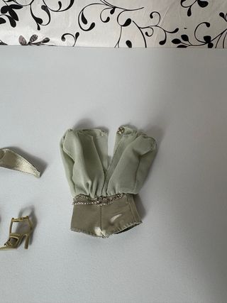 Set di abbigliamento e scarpe per Barbie della collezione On Location. Include un abito in tessuto satinato verde, una cintura abbinata e scarpe col tacco color champagne. Altri modelli Barbie Holiday Signature Silkstone Muse disponibili nel mio profilo.