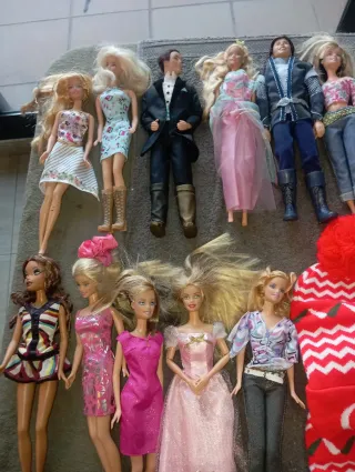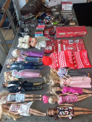 Assortimento di bambole Barbie e altri articoli vintage. Non conosco lo stato di alcuni articoli. - Diverse bambole con diversi abiti. - Accessori e piccoli giocattoli. - Scatola di Poker Chips vintage. - Articoli da collezione. Articoli di Coca-Cola.