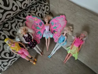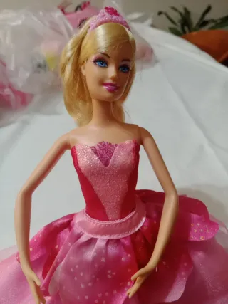 •Barbie Tori da Barbie la Principessa e la Pop Star nuova in scatola, non funziona, piccoli difetti nella scatola. •Moda Magica a Parigi: Barbie: piccola macchia sul vestito, non so se funziona. Marie Alecia: buone condizioni. •Un'avventura di sirene: Merliah: il velcro del top non chiude bene. •Principessa dell'Isola: Rosella edizione ballerina. Quella con il vestito viola in buone condizioni. •Fairytopia: Elina: buono stato, ali un po' piegate, funziona perfettamente. •Castello di Diamanti: Liana: canta in francese, meccanismo della gonna allentato sul lato destro. Pegaso: non funziona, ala fusa. Solo spedizione tramite punto pack. Richieedi foto.