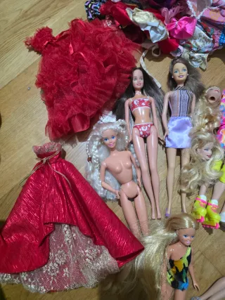 Lotteria di bambole Barbie da riparare. Sono diverse bambole con vari dettagli da sistemare.