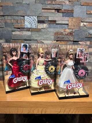 Set di tre bambole Barbie della collezione Grease in celebrazione del suo 30° anniversario. Ogni bambola rappresenta un personaggio iconico del film. - Bambola Sandy Olsson VENDUTA - Bambola Rizzo - Bambola Frenchy Disponibili anche separatamente, prezzi nel mio profilo.
