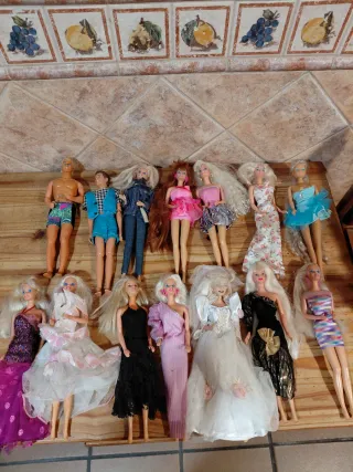 Lotteria di 12 bambole Barbie e 3 Ken vintage. Varietà di bambole Barbie. Figure di Ken. Abbigliamento e accessori vari.